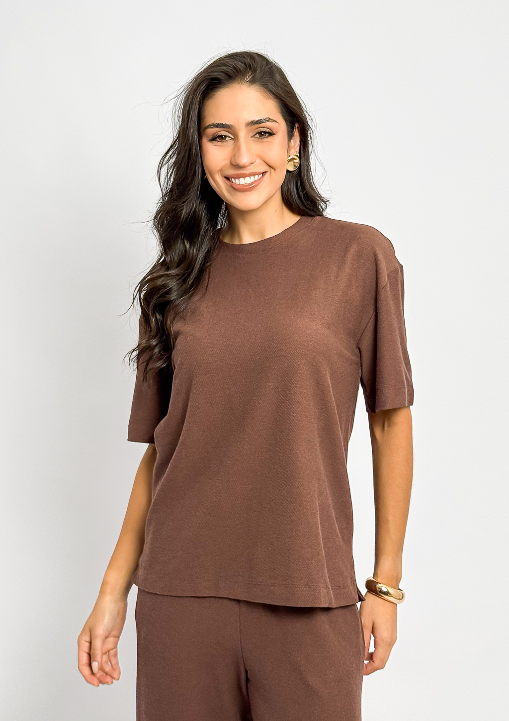 Combine com a Calça Pantalona Moletinho Cós Elástico para uma produção de conjunto.