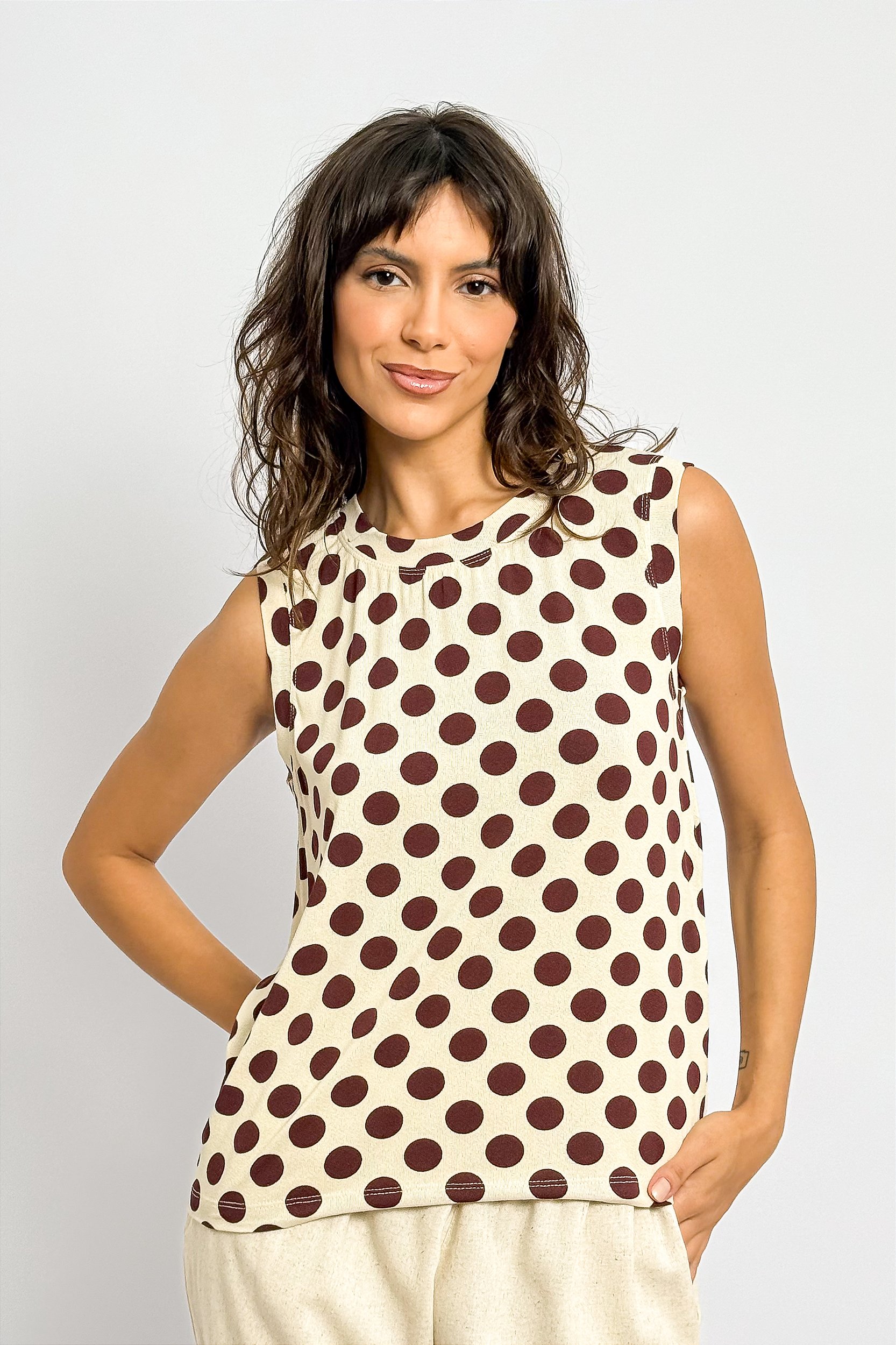 Possui estampa de poás e é a peça ideal para compor looks frescos e modernos em qualquer estação.