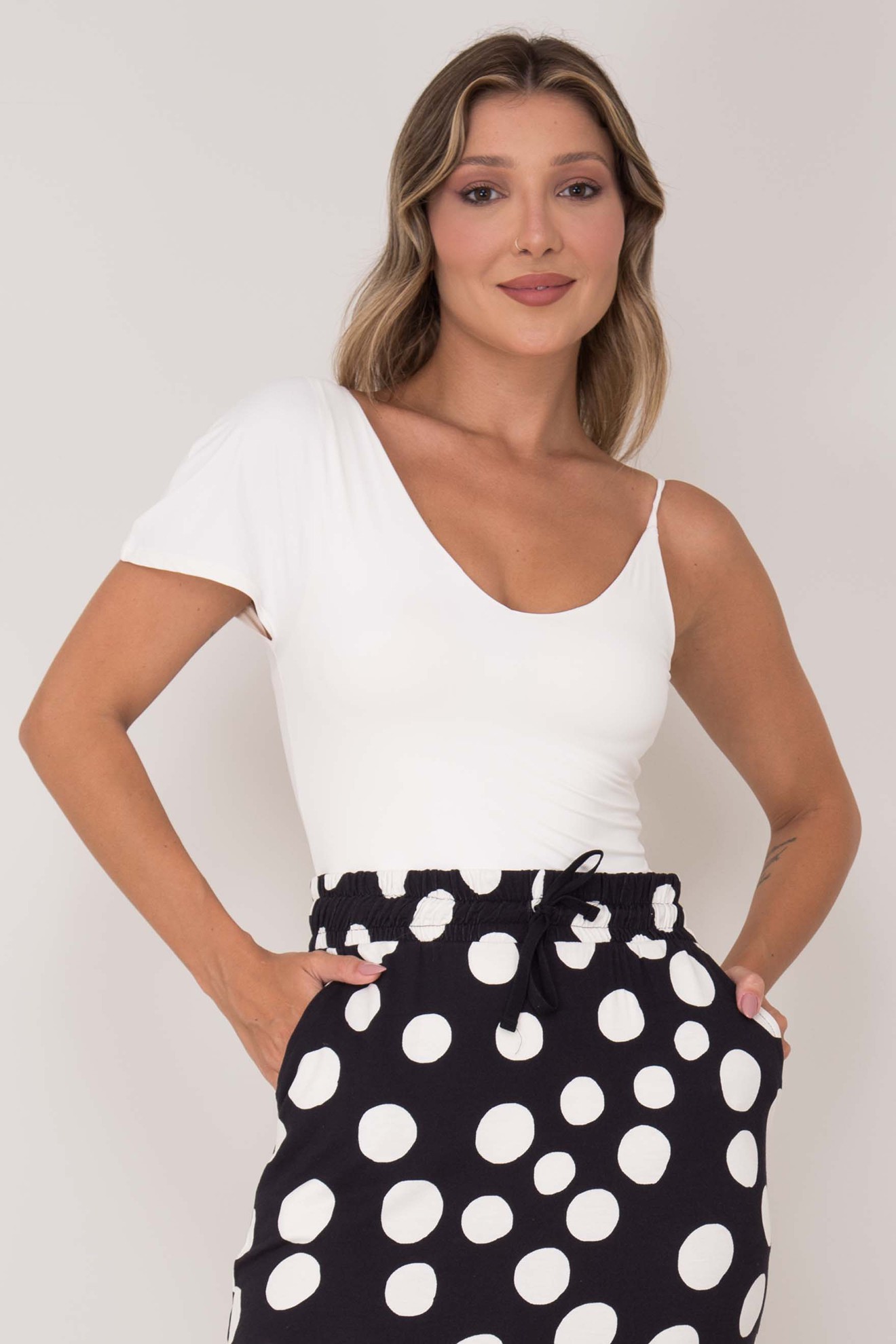 Body confeccionado em poliamida com elastano, forrado e com corte assimétrico de um ombro só.
