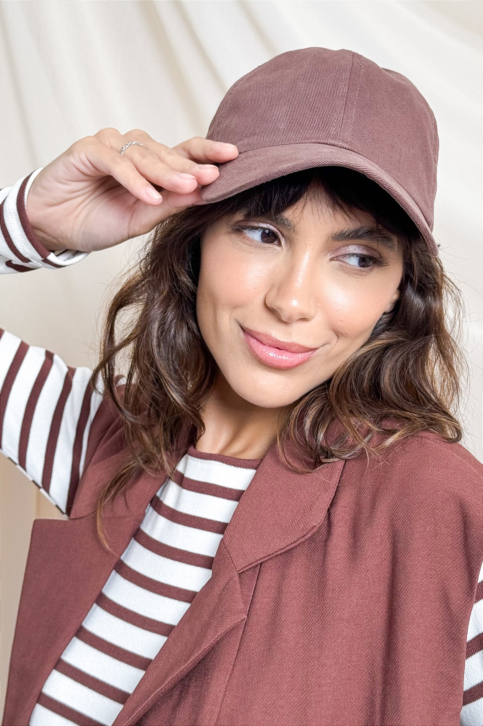 Esse boné possui aba levemente curva e ajuste posterior afivelado.