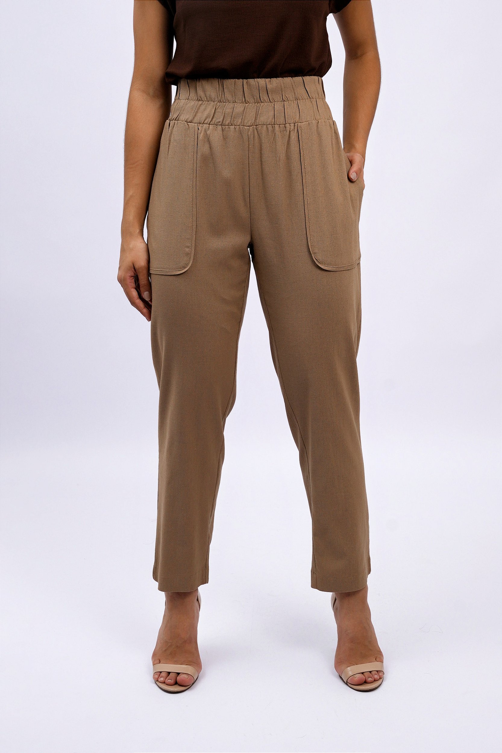 A Calça Reta Côs Elástico Bolso Amplo possui um toque suave e modelagem clássica com caimento soltinho, ideal para composições versáteis do trabalho ao fim de semana. O cós de elástico largo proporciona ajuste perfeito e conforto prolongado, enquanto os bolsos frontais amplos e arredondados adicionam um toque moderno e funcional ao visual.
