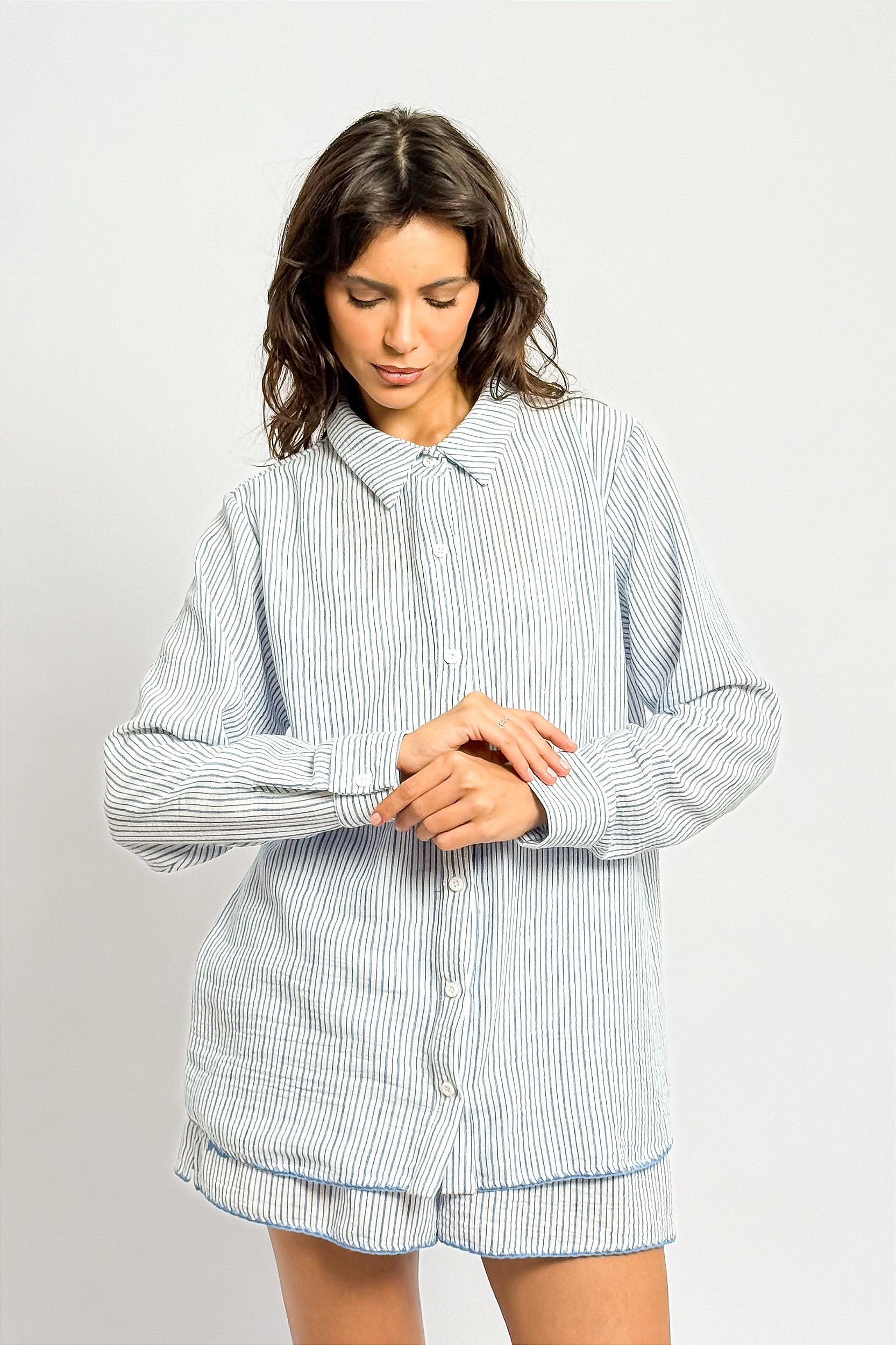 Pode ser usada aberta, com uma camiseta ou cropped por baixo,