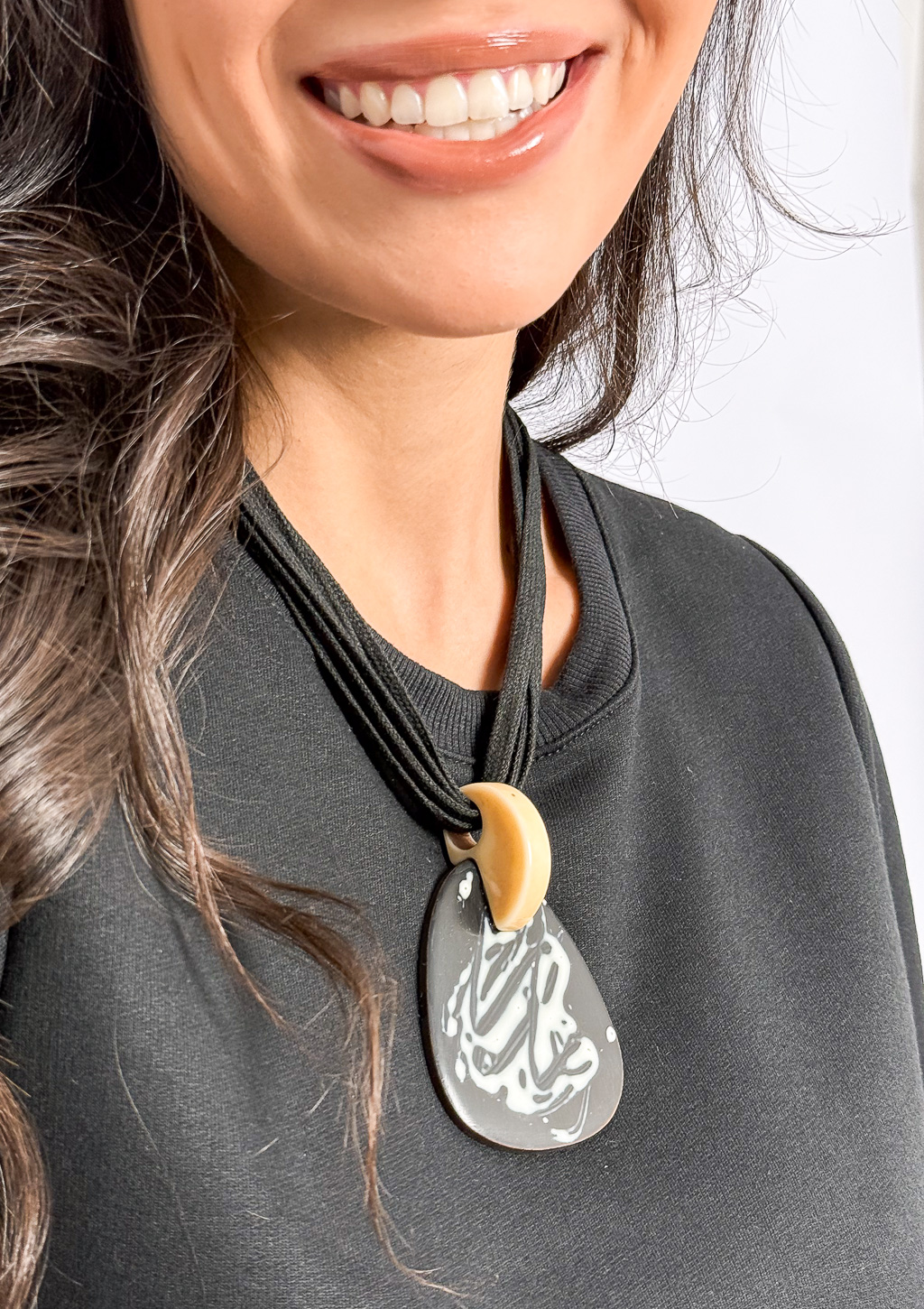 Colar Cordas Pingente Grande Desenho Abstrato | Referência CO2117
