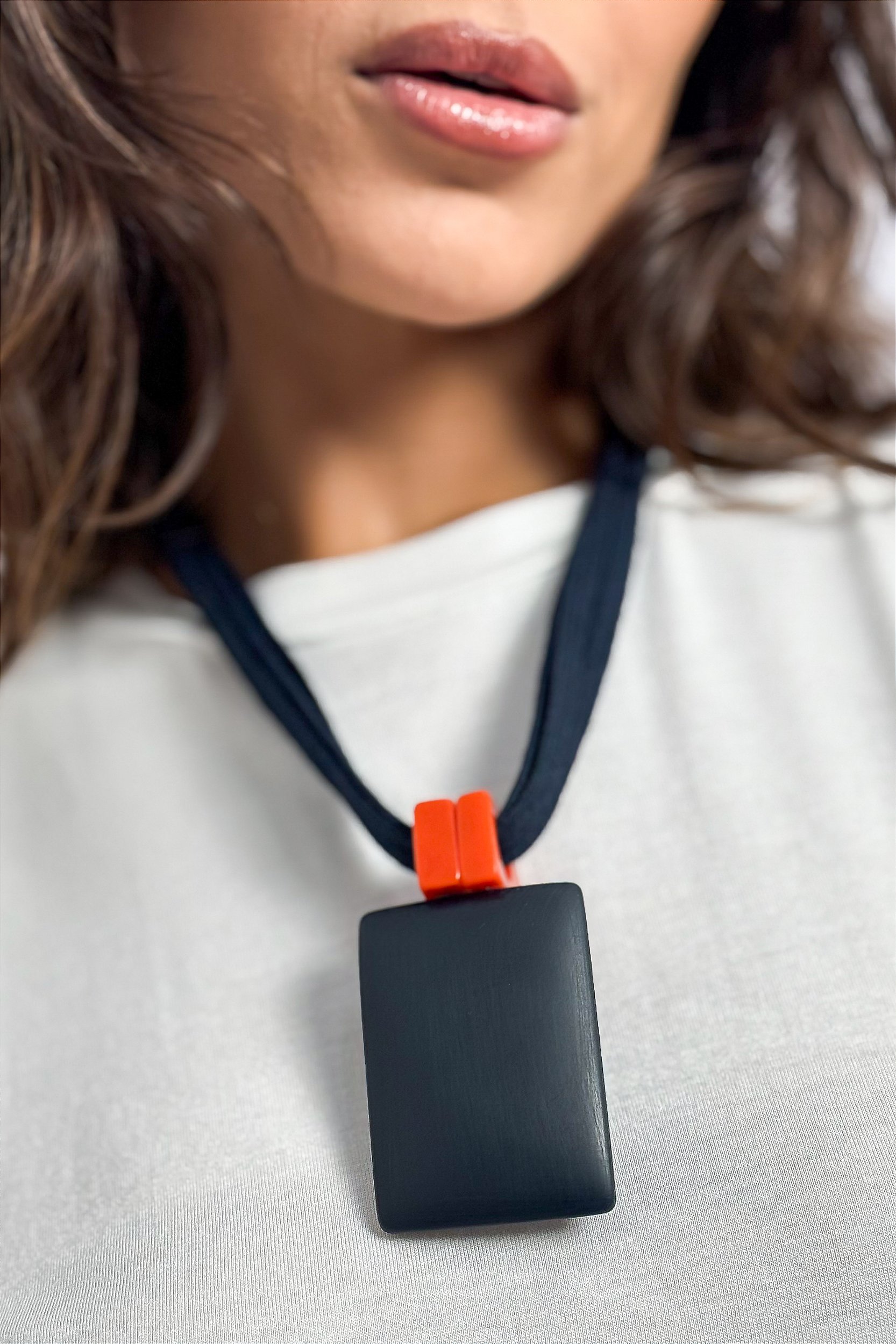 Colar curto, com presença e uma cor curinga. Pode ser usado para compor looks mais