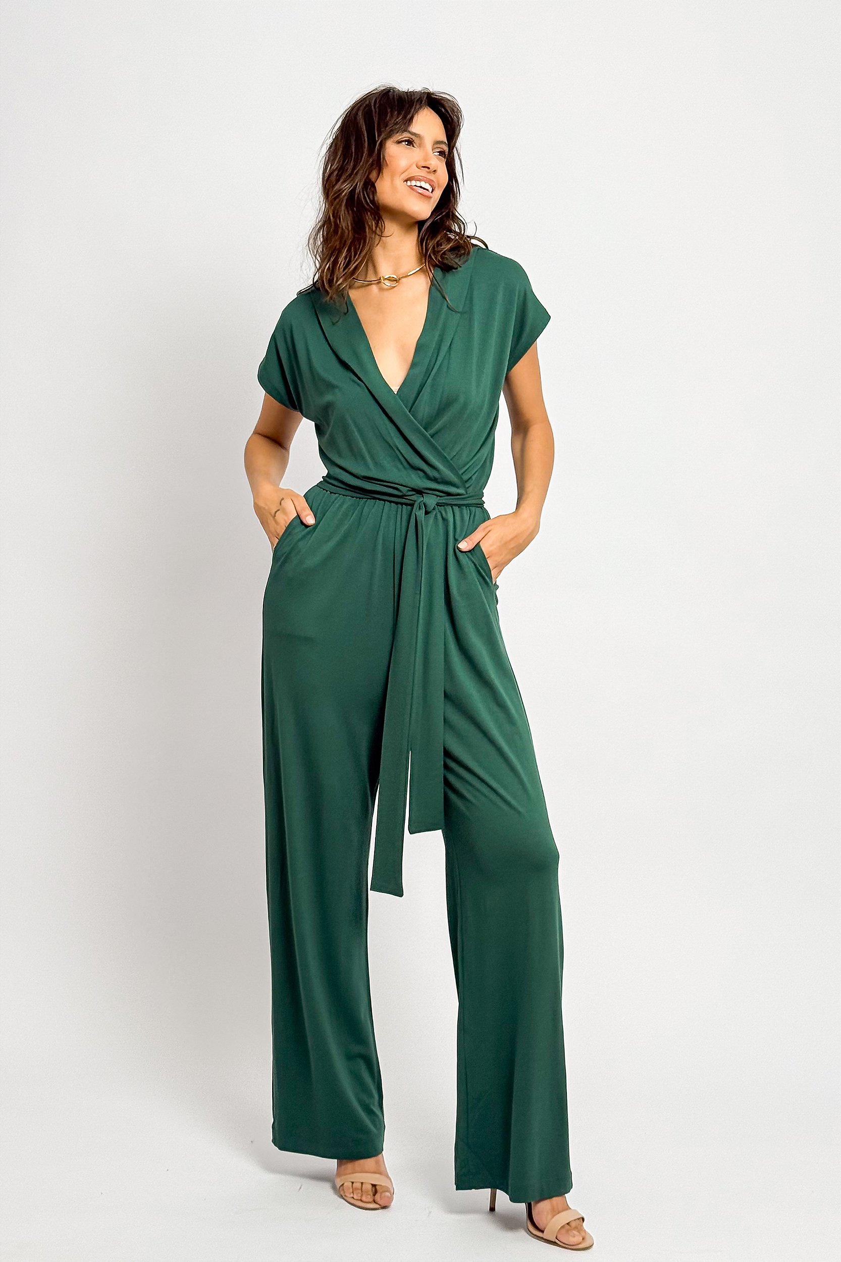 Macacão Decote V Transpassado Amarração Cintura