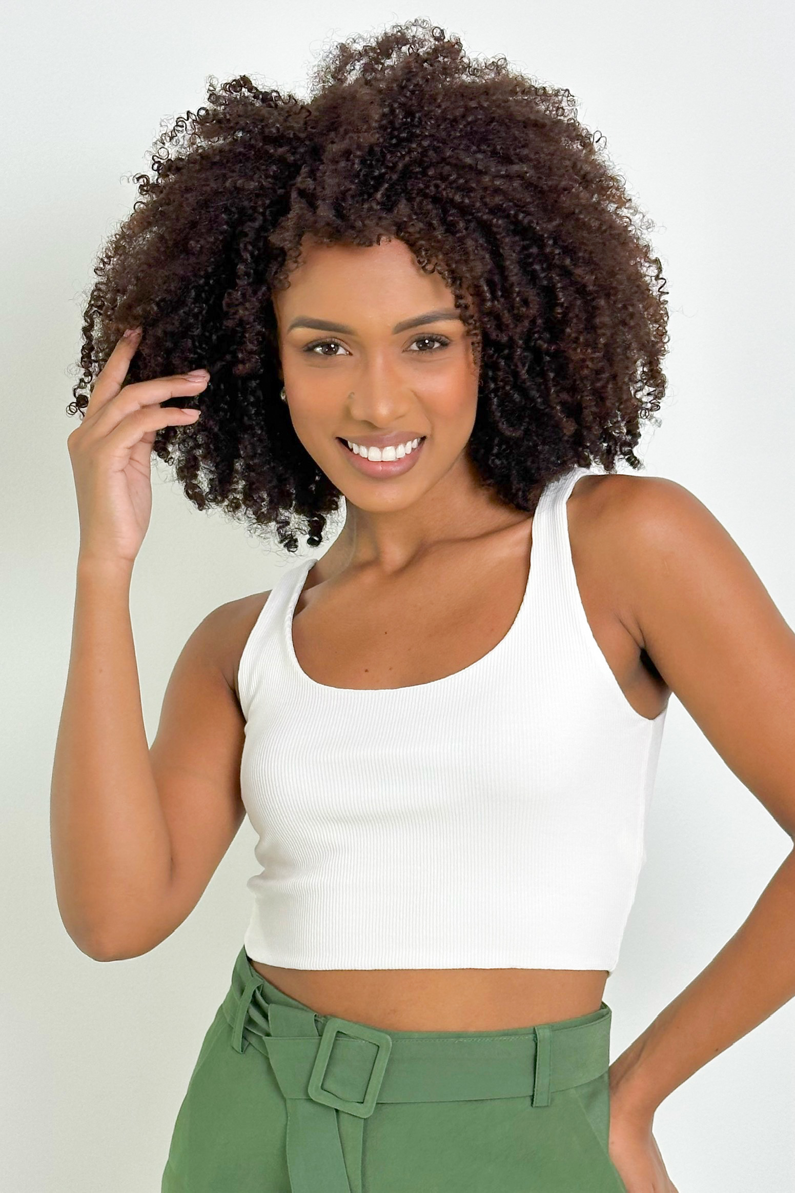 Cropped em malha de viscose e elastano, em duas cores, lima e branco.