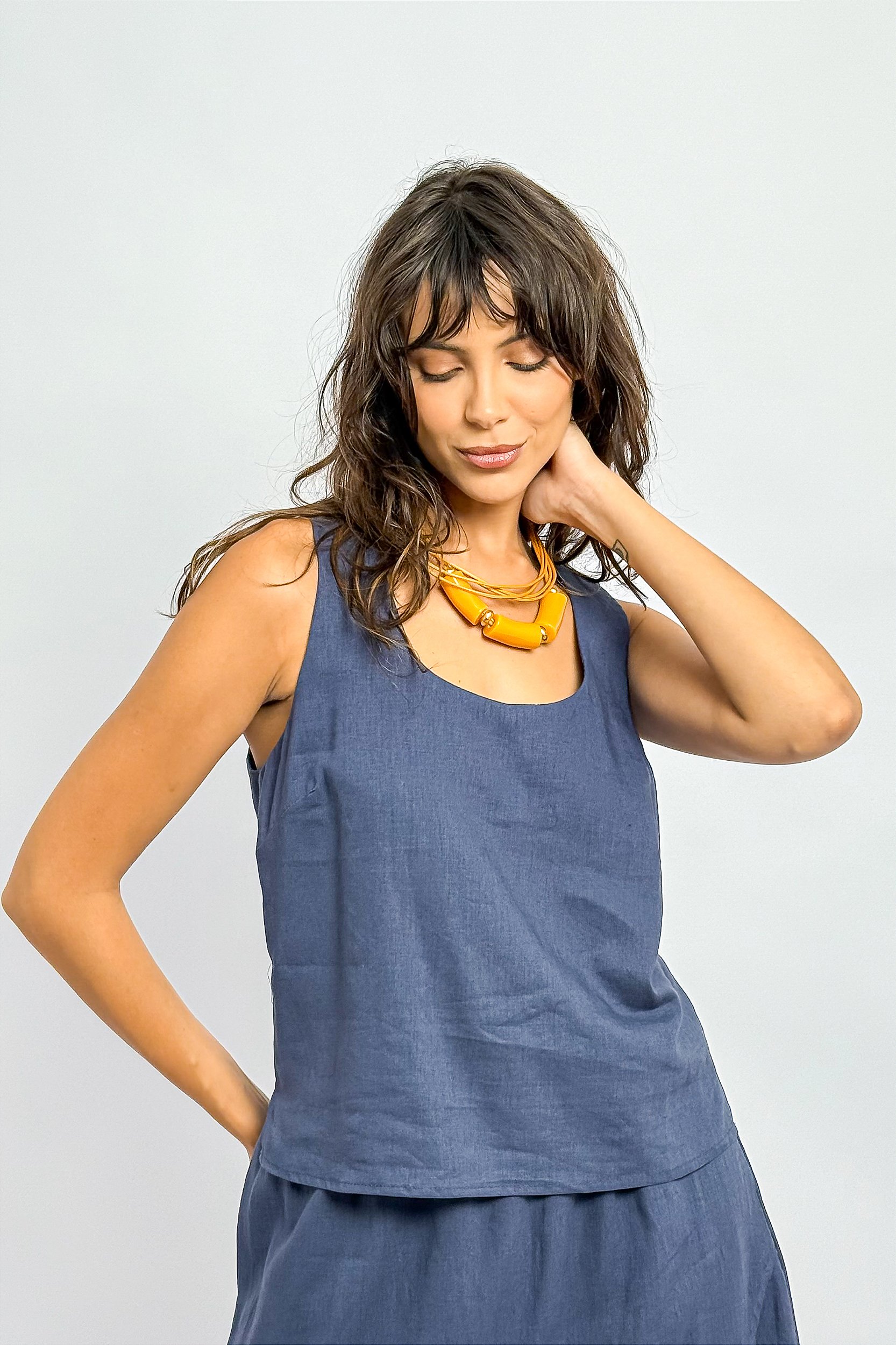 Combine com a Saia Midi Viscolinho Cós Elástico Amarração Ponteira para uma produção de conjunto.