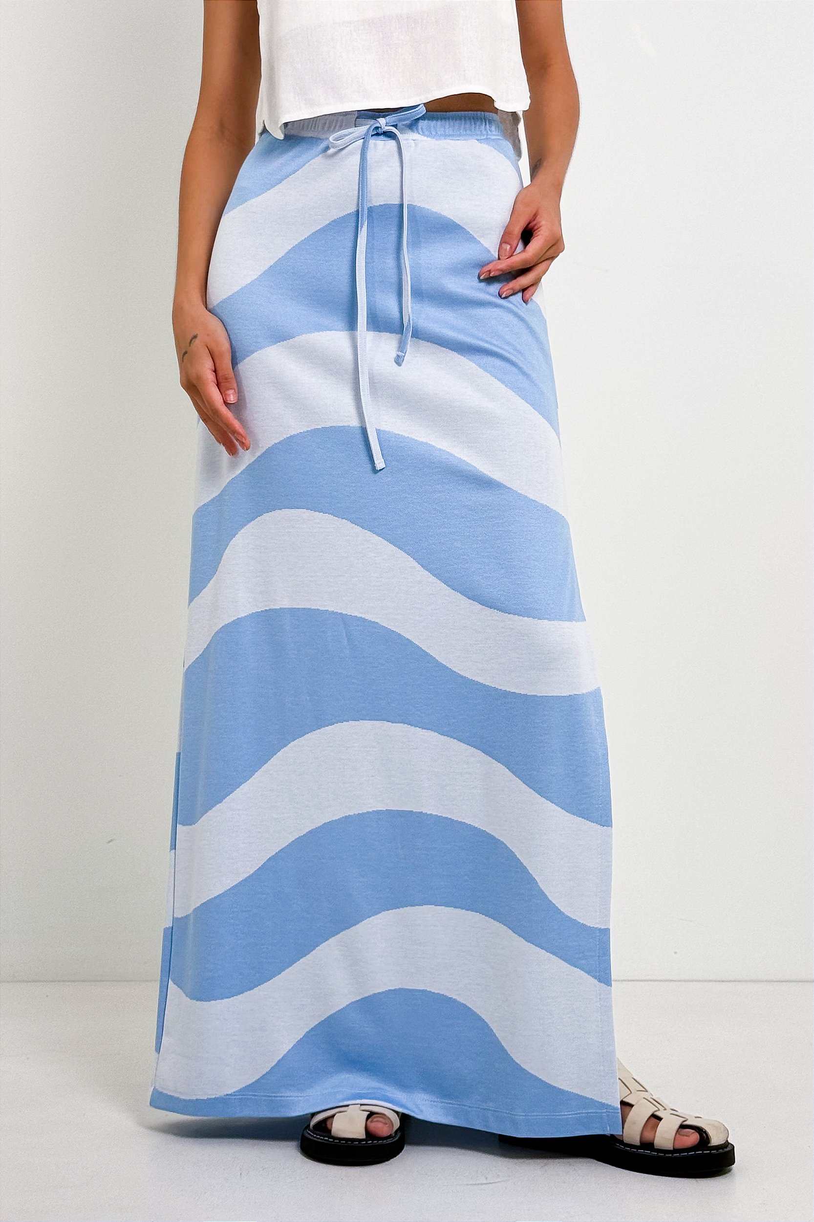 A Saia Longa Listras Onduladas Fenda é a junção do conforto com estilo.