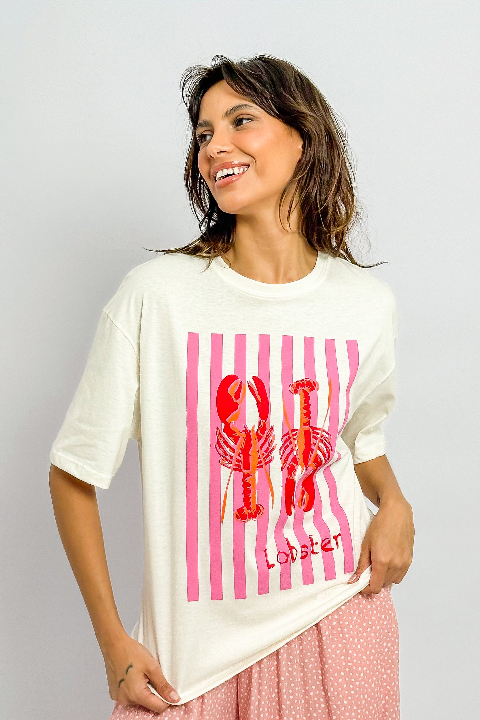 A gente ama! Confeccionada em malha de algodão, a nossa camiseta "Lagostas"