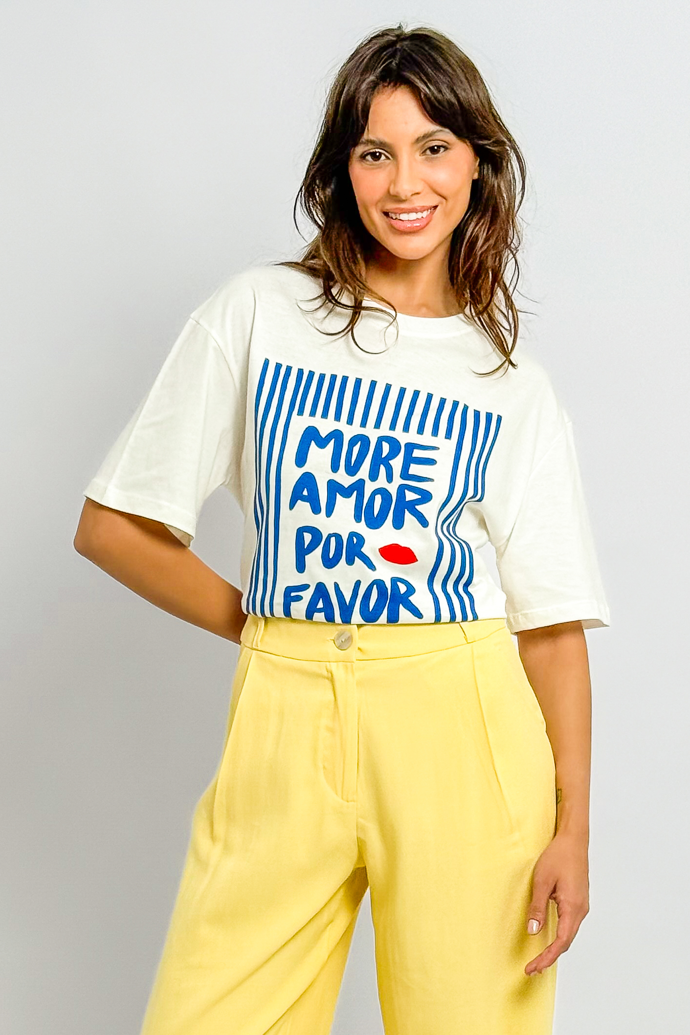 A gente ama! Confeccionada em malha de algodão, a nossa camiseta "More Amor Por Favor"