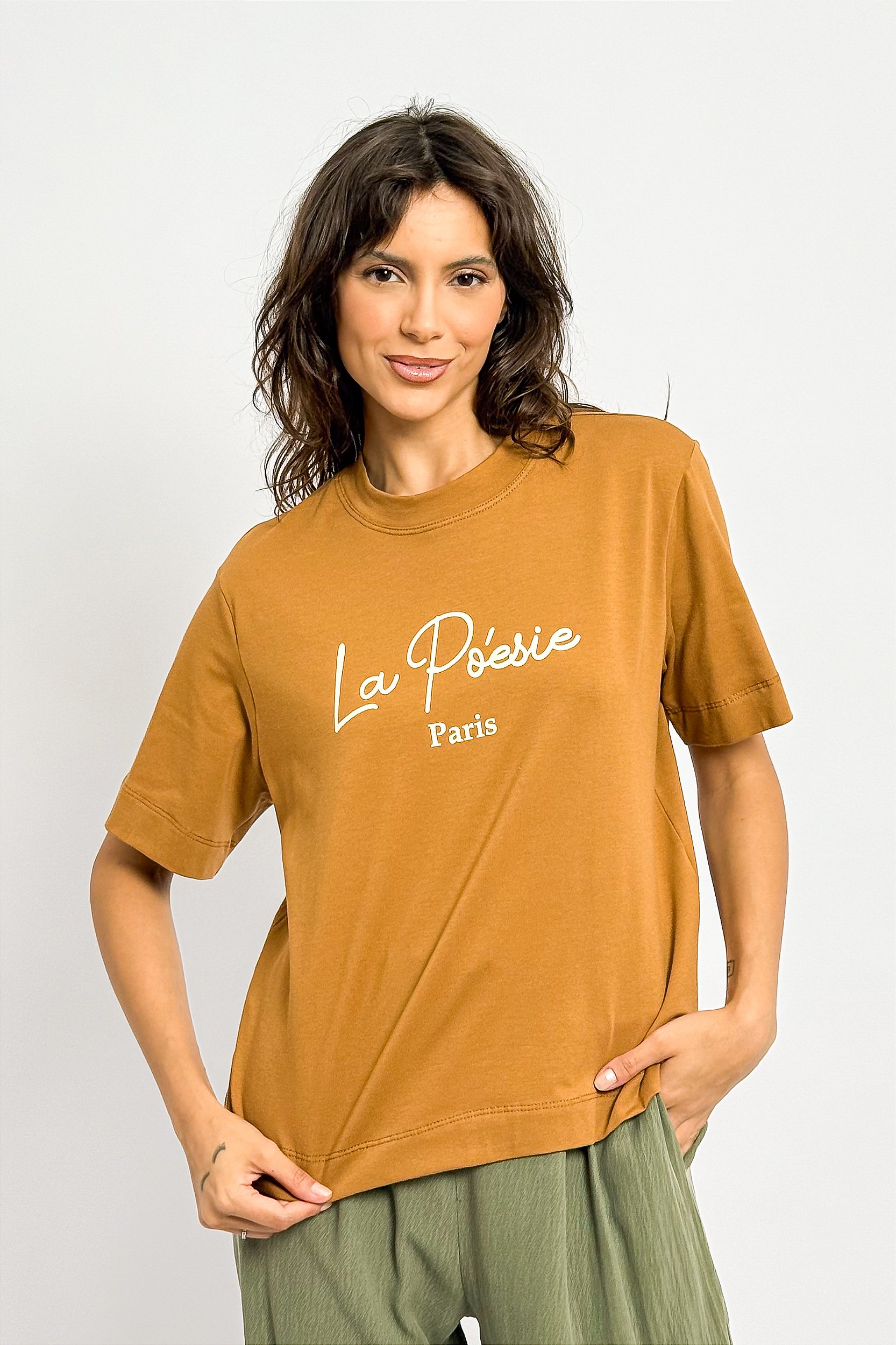 Prática e versátil, a T-shirt La Póesie Paris traz um ar divertido e confortável para as produções despojadas.