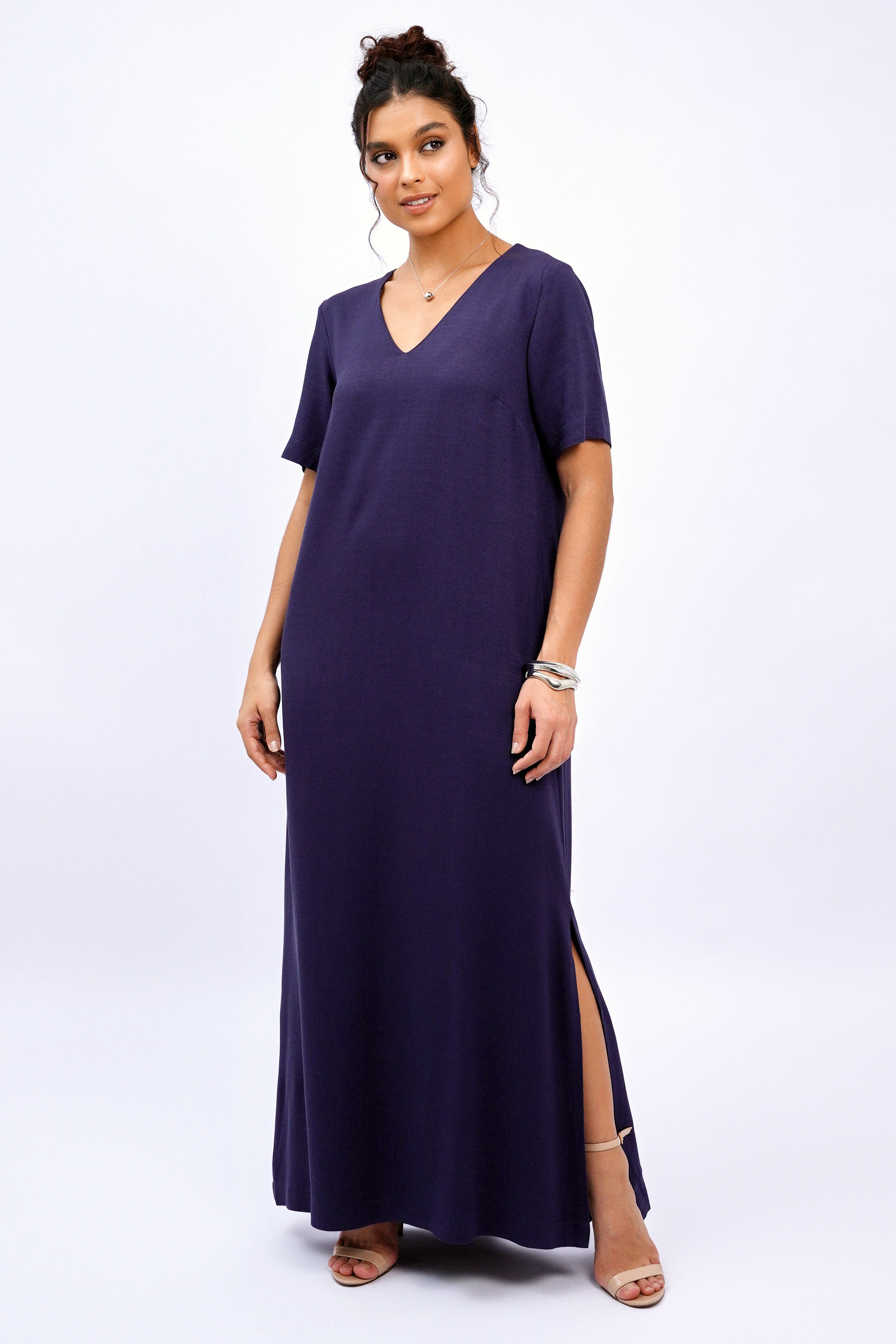 O Vestido Longo Viscose Decote V Fenda é minimalista, elegante e com um caimento impecável.